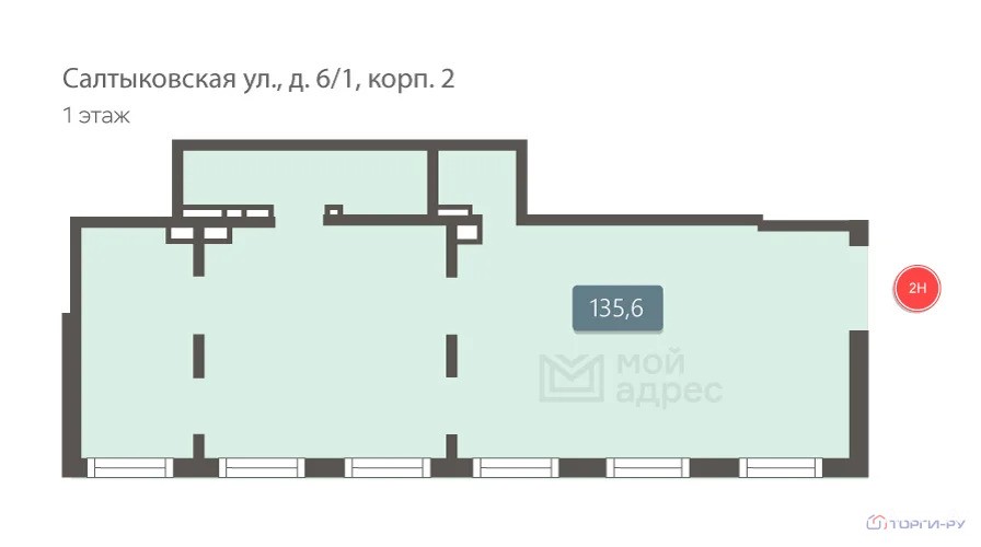 Нежилое помещение, 135, 6 м | ВАО, р-н Косино-Ухтомский, Салтыковская ул., д. 6/1, корп. 2, этаж 1, помещение 2Н | Метро: Новокосино (пешком 34 мин., транспортом 26 мин., расстояние 2.27 км)