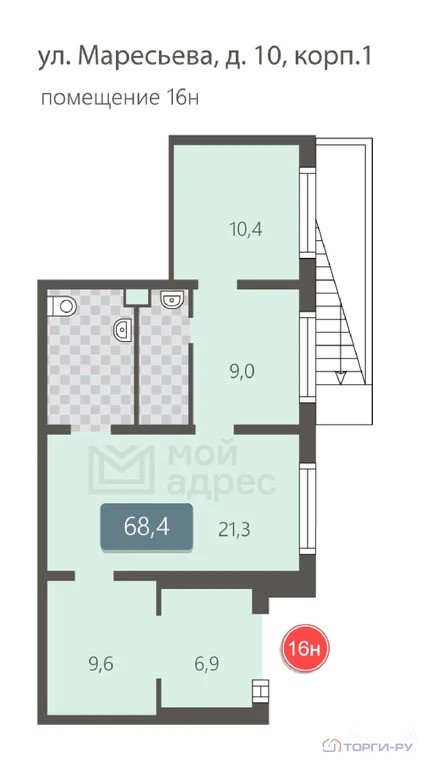 Нежилое помещение, 68, 4 м | ЮВАО, р-н Некрасовка, ул. Маресьева, д. 10, корп. 1, этаж 1, помещение 16Н | Метро: Некрасовка (пешком 15 мин., транспортом 15 мин., расстояние 1.19 км)
