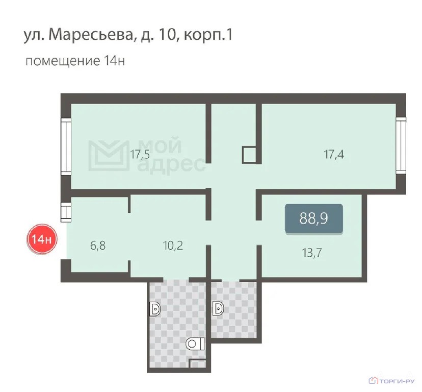 Нежилое помещение, 88, 9 м | ЮВАО, р-н Некрасовка, ул. Маресьева, д. 10, корп. 1, этаж 1, помещение 14Н | Метро: Некрасовка (пешком 15 мин., транспортом 15 мин., расстояние 1.19 км)