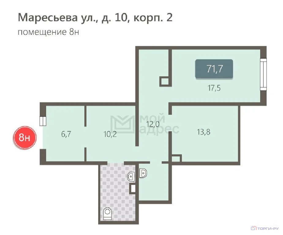 Нежилое помещение, 71, 7 м | ЮВАО, р-н Некрасовка, ул. Маресьева, д. 10, корп. 2, этаж 1, помещение 8Н | Метро: Некрасовка (пешком 16 мин., транспортом 16 мин., расстояние 1.28 км)
