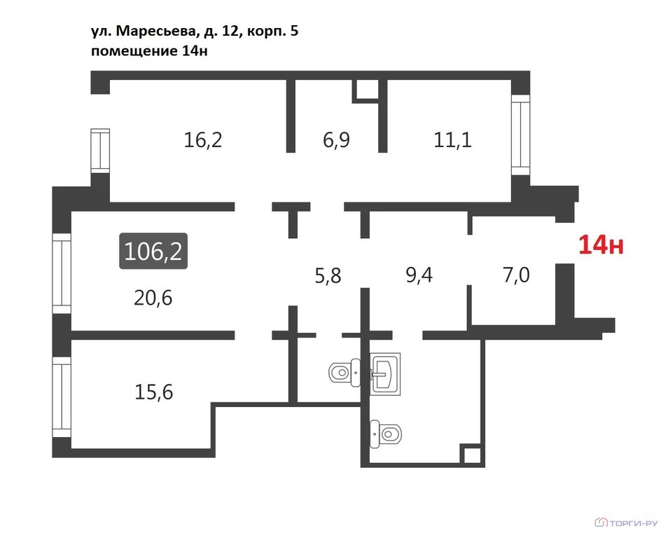 Нежилое помещение, 106, 2 м | ЮВАО, р-н Некрасовка, ул. Маресьева, д. 12, корп. 5, этаж 1, помещение 14н | Метро: Некрасовка (пешком 20 мин., транспортом 20 мин., расстояние 1.46 км)