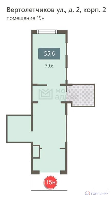 Нежилое помещение, 55, 6 м | ЮВАО, р-н Некрасовка, ул. Вертолётчиков, д. 2, корп. 2, этаж 1, помещение 15Н | Метро: Некрасовка (пешком 12 мин., транспортом 12 мин., расстояние 0.96 км)