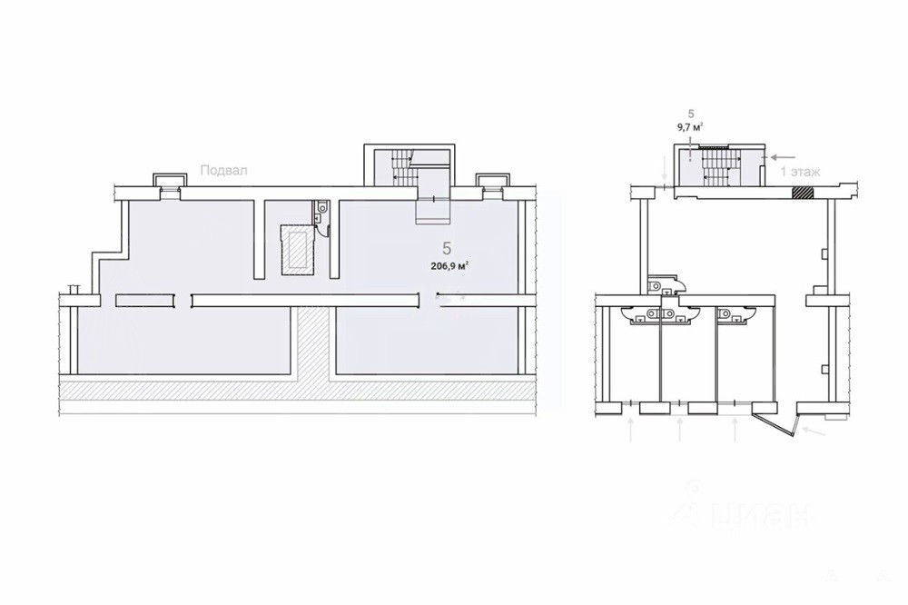 Здaние нa первой линии, oтдeльный вхoд c улицы. Планировка открытая, высота потолков 2, 5м