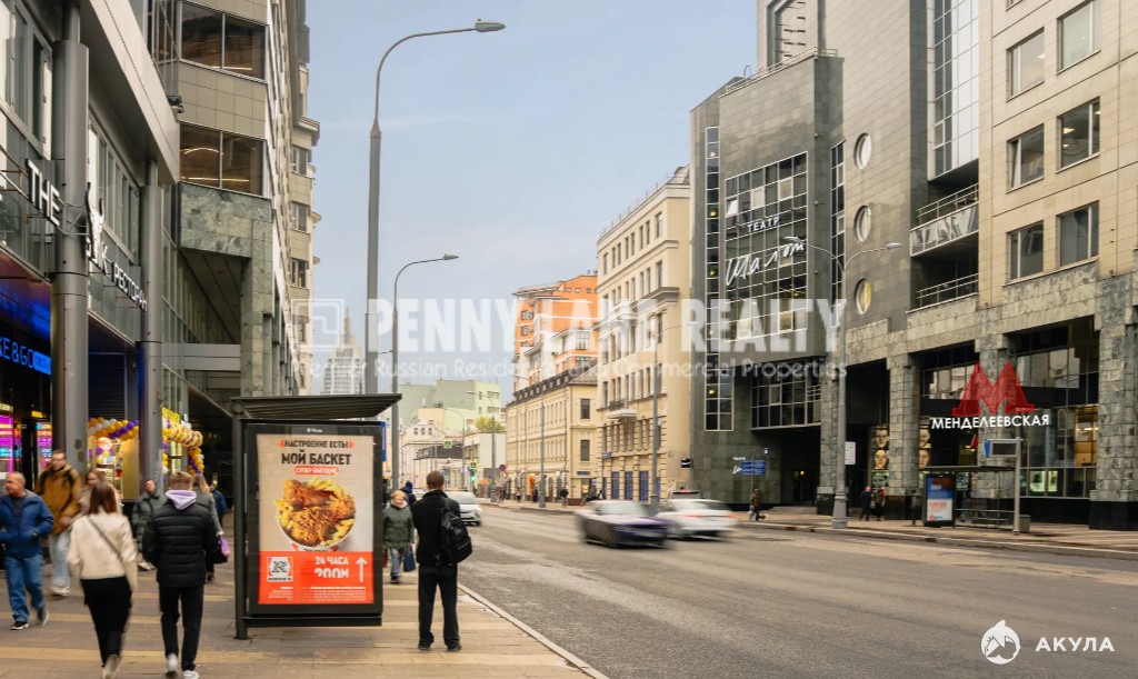 Идеальная локация: всего 1 минута пешком от метро «Менделеевская», удобный выезд на Садовое кольцо.