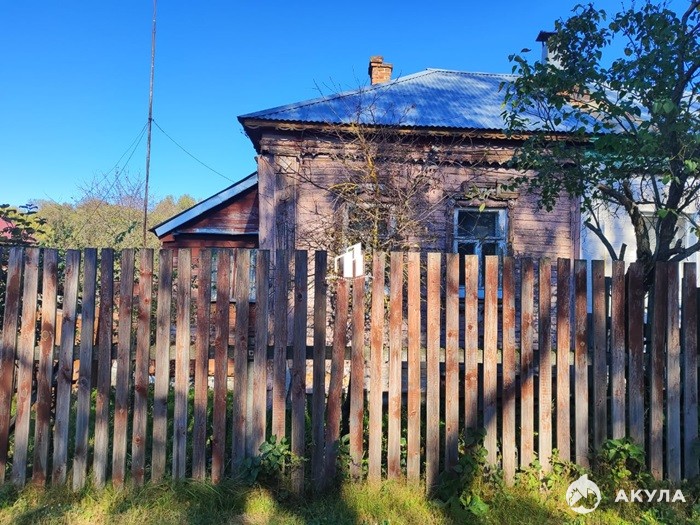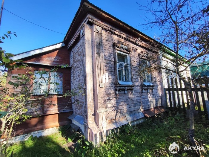 Дом бревенчатый, крепкий на ленточном кирпичном фундаменте. Крыша покрыта железом, окна , полы, перегородки деревянные. В дом заведено электричество, остальные коммуникации :газ, водопровод, центральная канализация по границе. Дом требует ремонта. Туалет на улице.