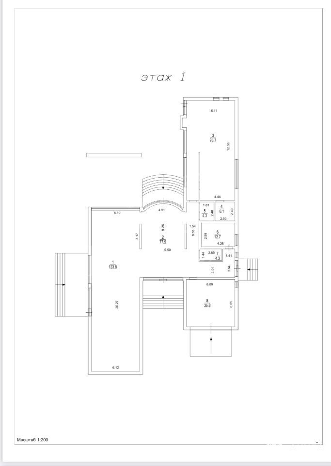1 этаж: прихожая, гардеробная, котельная, с/у, кладовая, гостиная, кухня-столовая.