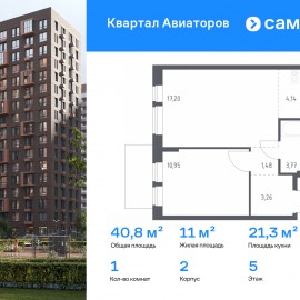 Строим кварталы для жизни с заботой о будущем. Предлагается 1-комнатная квартира комфорт-класса 40, 8 кв.м в корпусе 2 на 5 этаже, в ЖК «Квартал Авиаторов» Квартира с чистовой отделкой. Доступность дополнительных опций уточняйте у застройщика. Приобрести квартиру возможно по...