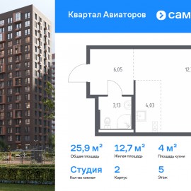 Строим кварталы для жизни с заботой о будущем. Предлагается квартира студия комфорт-класса 25, 91 кв.м в корпусе 2 на 5 этаже, в ЖК «Квартал Авиаторов» Квартира без отделки. Доступность опции «отделка» и возможность комплектации мебелью и декором уточняйте у...