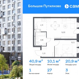 Строим кварталы для жизни с заботой о будущем. Предлагается 1-комнатная квартира комфорт-класса 40, 87 кв.м в корпусе 27 на 3 этаже, в ЖК «Большое Путилково» Квартира с чистовой отделкой. Доступность дополнительных опций уточняйте у застройщика. Приобрести квартиру возможно...