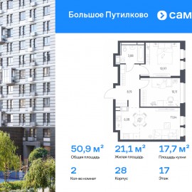 Строим кварталы для жизни с заботой о будущем. Предлагается 2-комнатная квартира комфорт-класса 50, 87 кв.м в корпусе 28 на 17 этаже, в ЖК «Большое Путилково» Квартира с чистовой отделкой. Доступность дополнительных опций уточняйте у застройщика. Приобрести квартиру возможно...
