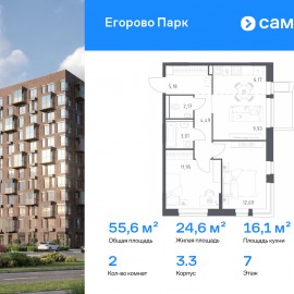 Строим кварталы для жизни с заботой о будущем. Предлагается 2-комнатная квартира комфорт-класса 55, 59 кв.м в корпусе 3.3 на 7 этаже, в ЖК «Егорово Парк» Квартира без отделки. Доступность опции «отделка» и возможность комплектации мебелью и декором уточняйте у...