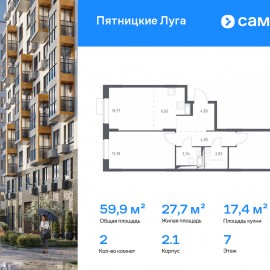 Строим кварталы для жизни с заботой о будущем. Предлагается 2-комнатная квартира комфорт-класса 59, 89 кв.м в корпусе 2.1 на 7 этаже, в ЖК «Пятницкие Луга» Квартира с чистовой отделкой. Доступность дополнительных опций уточняйте у застройщика. Приобрести квартиру возможно по...