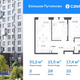 Строим кварталы для жизни с заботой о будущем. Предлагается 2-комнатная квартира комфорт-класса 51, 22 кв.м в корпусе 28 на 22 этаже, в ЖК «Большое Путилково» Квартира с чистовой отделкой. Доступность дополнительных опций уточняйте у застройщика. Приобрести квартиру возможно...