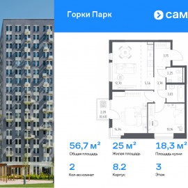 Строим кварталы для жизни с заботой о будущем. Предлагается 2-комнатная квартира комфорт-класса 56, 7 кв.м в корпусе 8.2 на 3 этаже, в ЖК «Горки Парк» Квартира без отделки. Доступность опции «отделка» и возможность комплектации мебелью и декором уточняйте у...