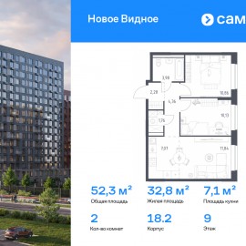 Строим кварталы для жизни с заботой о будущем. Предлагается 2-комнатная квартира комфорт-класса 52, 28 кв.м в корпусе 18.2 на 9 этаже, в ЖК «Новое Видное» Квартира без отделки. Доступность опции «отделка» и возможность комплектации мебелью и декором уточняйте у...