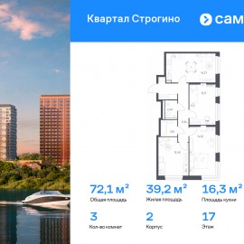 Строим кварталы для жизни с заботой о будущем. Предлагается 3-комнатная квартира комфорт-класса 72, 1 кв.м в корпусе 2 на 17 этаже, в ЖК «Квартал Строгино» Квартира без отделки. Доступность опции «отделка» и возможность комплектации мебелью и декором уточняйте у...