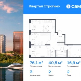 Строим кварталы для жизни с заботой о будущем. Предлагается 3-комнатная квартира комфорт-класса 76, 15 кв.м в корпусе 2 на 2 этаже, в ЖК «Квартал Строгино» Квартира с чистовой отделкой. Доступность дополнительных опций уточняйте у застройщика. Приобрести квартиру возможно по...