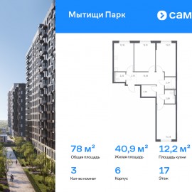 Строим кварталы для жизни с заботой о будущем. Предлагается 3-комнатная квартира комфорт-класса 77, 99 кв.м в корпусе 6 на 17 этаже, в ЖК «Мытищи Парк» Квартира с чистовой отделкой. Доступность дополнительных опций уточняйте у застройщика. Приобрести квартиру возможно по...