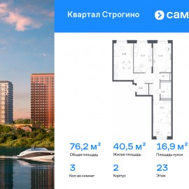 Строим кварталы для жизни с заботой о будущем. Предлагается 3-комнатная квартира комфорт-класса 76, 15 кв.м в корпусе 2 на 23 этаже, в ЖК «Квартал Строгино» Квартира с чистовой отделкой. Доступность дополнительных опций уточняйте у застройщика. Приобрести квартиру возможно по...