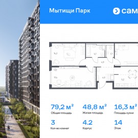 Строим кварталы для жизни с заботой о будущем. Предлагается 3-комнатная квартира комфорт-класса 79, 2 кв.м в корпусе 4.2 на 14 этаже, в ЖК «Мытищи Парк» Квартира с чистовой отделкой. Доступность дополнительных опций уточняйте у застройщика. Приобрести квартиру возможно по...