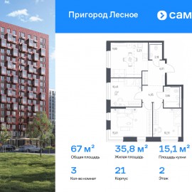 Строим кварталы для жизни с заботой о будущем. Предлагается 3-комнатная квартира комфорт-класса 66, 98 кв.м в корпусе 21 на 2 этаже, в ЖК «Пригород Лесное» Квартира с чистовой отделкой. Доступность дополнительных опций уточняйте у застройщика. Приобрести квартиру возможно по...