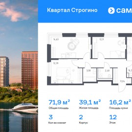 Строим кварталы для жизни с заботой о будущем. Предлагается 3-комнатная квартира комфорт-класса 71, 94 кв.м в корпусе 2 на 12 этаже, в ЖК «Квартал Строгино» Квартира без отделки. Доступность опции «отделка» и возможность комплектации мебелью и декором уточняйте у...