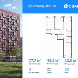 Строим кварталы для жизни с заботой о будущем. Предлагается 3-комнатная квартира комфорт-класса 77, 73 кв.м в корпусе 21 на 16 этаже, в ЖК «Пригород Лесное» Квартира с чистовой отделкой. Доступность дополнительных опций уточняйте у застройщика. Приобрести квартиру возможно по...