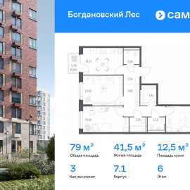 Строим кварталы для жизни с заботой о будущем. Предлагается 3-комнатная квартира комфорт-класса 78, 95 кв.м в корпусе 7.1 на 6 этаже, в ЖК «Богдановский Лес» Квартира без отделки. Доступность опции «отделка» и возможность комплектации мебелью и декором уточняйте у...