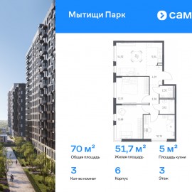 Строим кварталы для жизни с заботой о будущем. Предлагается 3-комнатная квартира комфорт-класса 69, 97 кв.м в корпусе 6 на 3 этаже, в ЖК «Мытищи Парк» Квартира без отделки. Доступность опции «отделка» и возможность комплектации мебелью и декором уточняйте у...