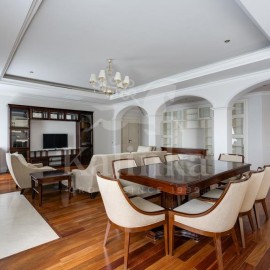Продам элитный пентхаус 255, 3 м2 с дизайнерским ремонтом в стиле "Шале". Расположен на четвертом этаже, 3 спальные комнаты, каждая со своим санузлом и гардеробной комнатой. На полу паркетная доска, подоконники из мрамора. Гостиная 100 м2 объединена с кухней. Балкон во двор....
