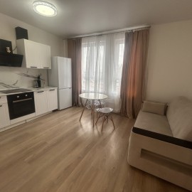 Арт. 93503033. Сдается впервые светлая и теплая квартира-студия в новом ЖК Мытищи парк, корпус 1, этаж 3. Вся необходимая мебель и техника имеется, диван, холодильник, духовка, плита, стиральная машина, посуда, шкаф. Дополнительный шкаф и телевизор можно купить в счет залога. Окна...