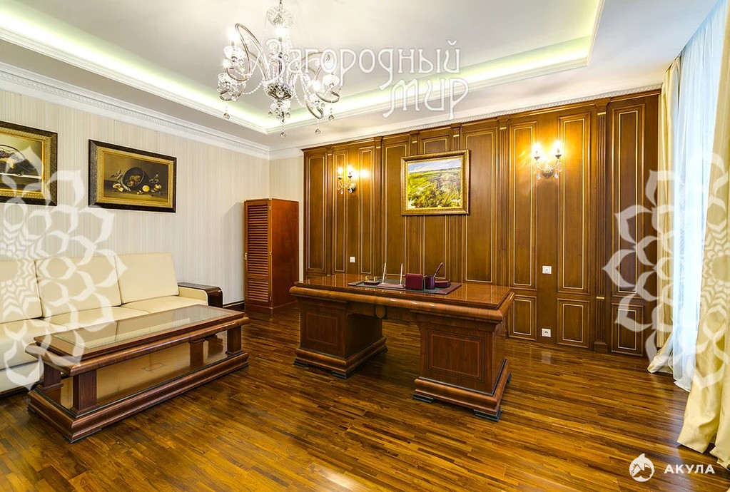 У дома мягкая кровля, окна - тройные стеклопакеты. В доме уютная гостиная с камином, оборудованная кухня-столовая, 5 спален, 4 гардеробные комнаты, кабинет, 4 с/у, сауна, балкон, веранда, подвал. Чистый и светлый дом полностью меблирован, оборудован всей необходимой техникой.
