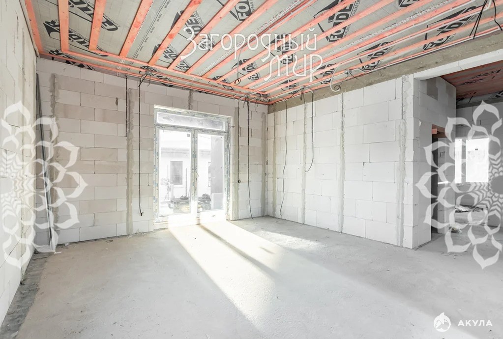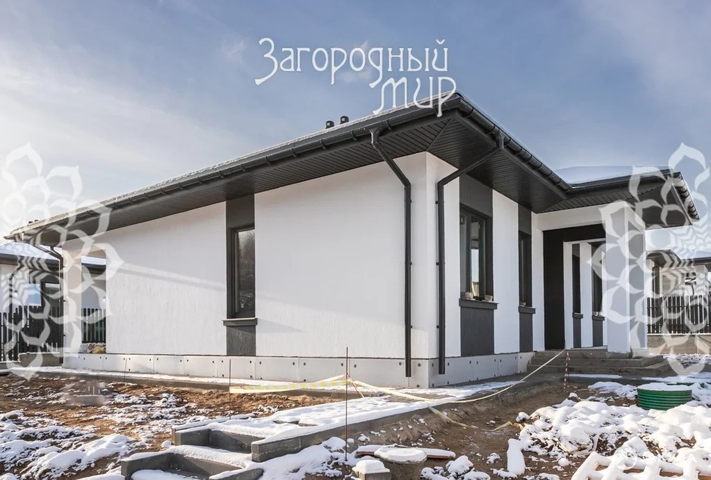 Площадь 133 кв. м без отделки. Построен из газобетонных блоков D400 на монолитной плите, внешне дом отделан штукатуркой "Короед" и покрашен фасадной краской. Кровля - мягкая черепица, окна - стеклопакеты. В доме: кухня-гостиная, 3 спальни (одна из них - мастер-спальня), холл, 2 с/у, бойлерная, терраса.