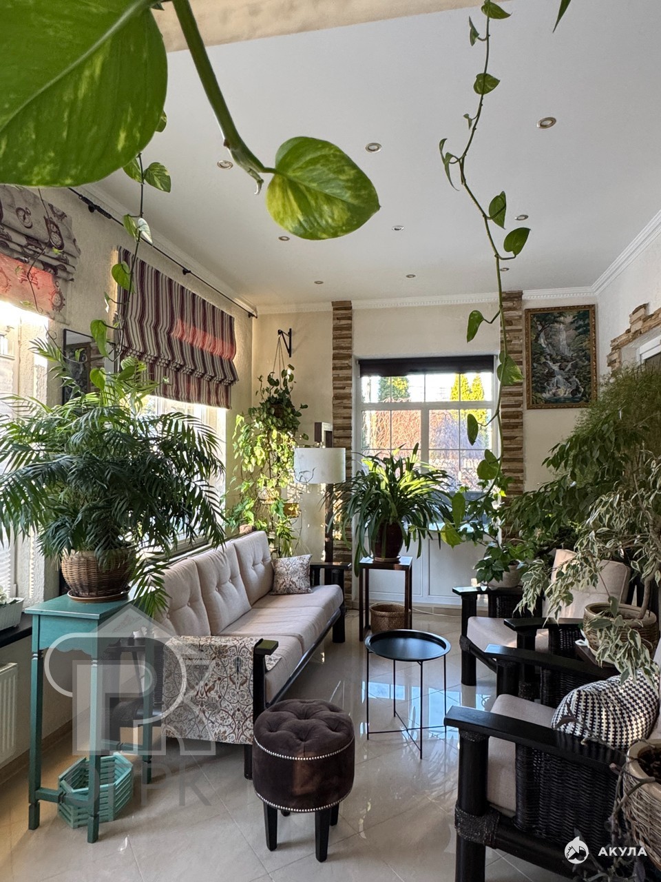 Ландшафтный дизайн участка (саду 15 лет) со взрослыми деревьями, птицы и белки частые гости. В доме имеется домашняя оранжерея с вечнозелеными растениями.