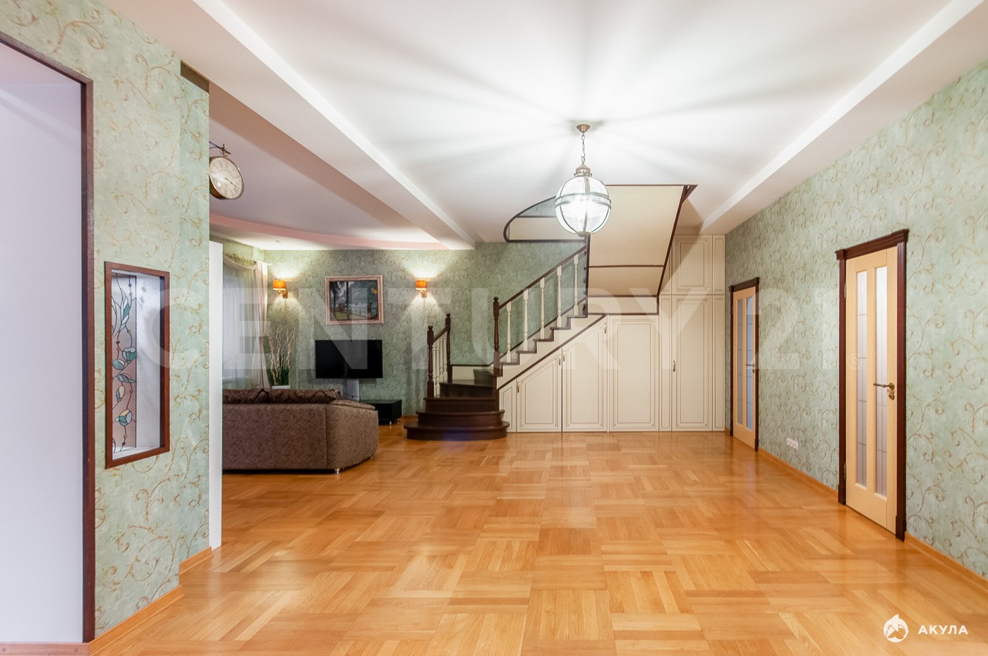 просторная прихожая 20 м² с вместительными шкафами, гостиная 40 м², кухня 23 м², гостевая спальня 15 м², санузел. В отделке использованы материалы ведущих итальянских производителей премиального сегмента. Кухня полностью укомплектована бытовой техникой. Высота потолков 3, 5 м.