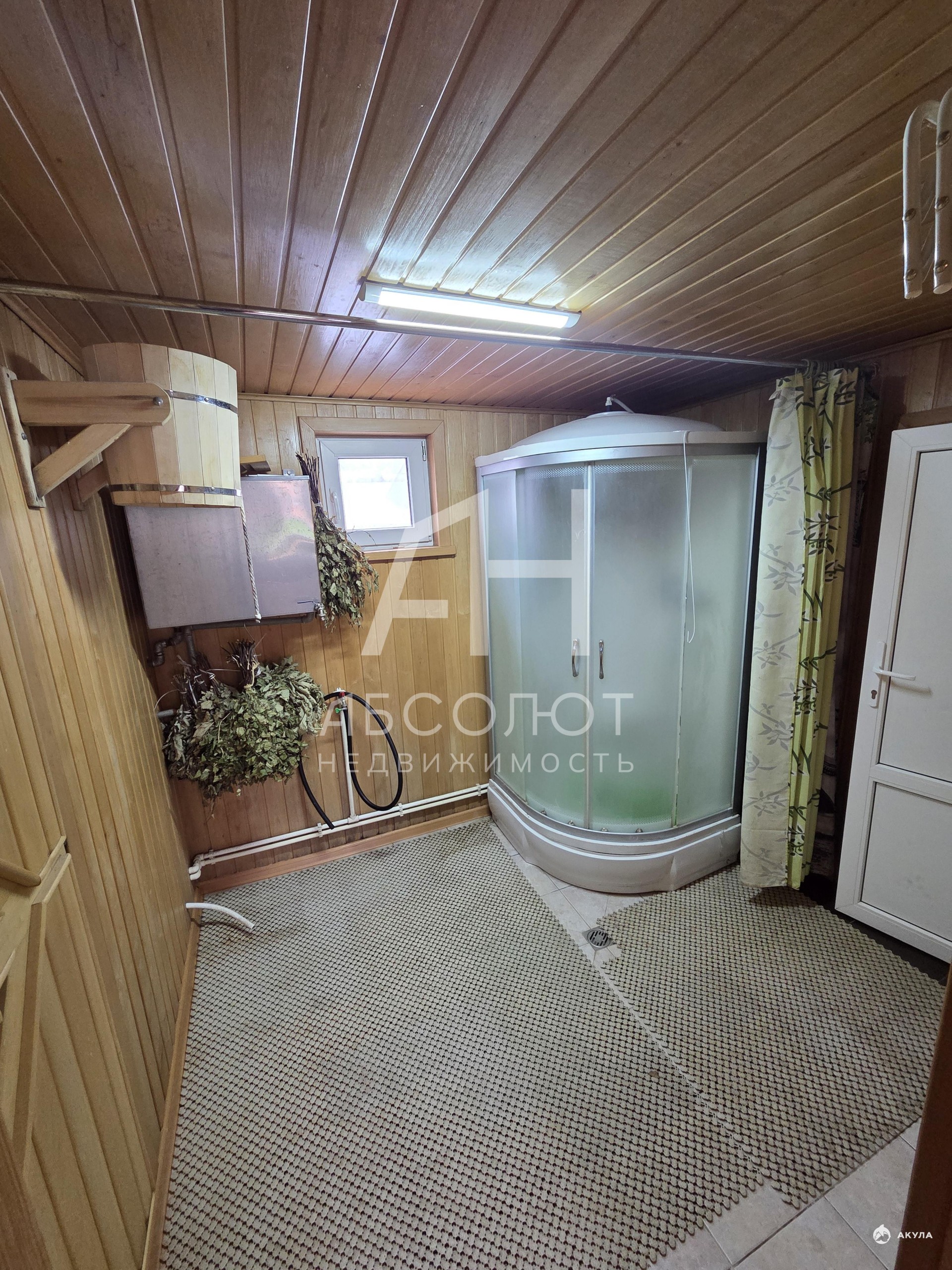 О доме: двухэтажное здание из бруса — материал дышит, создавая особый микроклимат: летом дарит прохладу, зимой — уют. Фундамент свайно-ленточный, заглублён на 2 метра (ниже промерзания грунта). Пол и крыша утеплены 150-мм, кровля — мягкая черепица. Электричество — 15 кВт, отопление газовое от магистрали. Вода поступает из скважины 56 м, дополнительно на участке есть колодец (10 колец). Канализация — бетонные кольца.