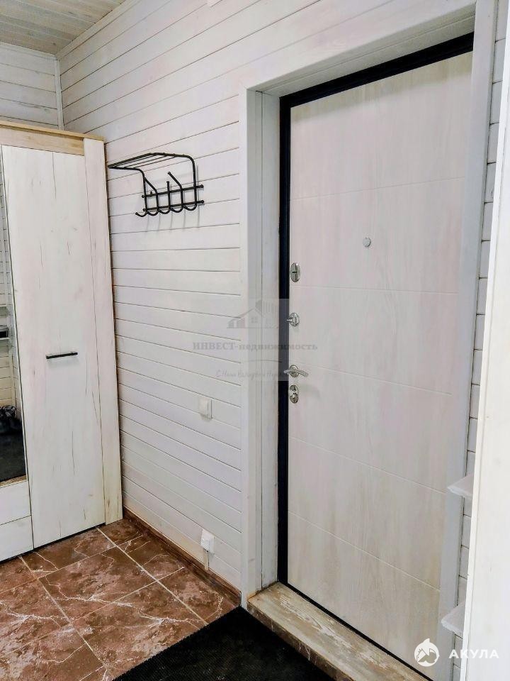 Внутренняя отделка. Потолок ровный, светлого оттенка, отделан белыми панелями, что добавляет помещению света и воздушности. Стены также светлые, облицованы панелями с горизонтальным рельефом в бежевом цвете. Это создает эффект пространства, чистоты и уюта. Пол ламинат. Напольное покрытие имеет имитацию древесины светло-бежевого оттенка, что хорошо гармонирует с общим стилем комнаты и придает ей современный, аккуратный вид.