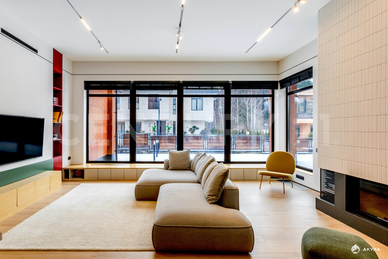 Продается стильный, современный, двухэтажный дом 352, 6 м² с дизайнерской отделкой и мебелью на заказ на участке 15 соток. Отапливаемый гараж на два автомобиля. Находится в коттеджном поселке бизнес класса FORTOPS, всего 24 км от МКАД.