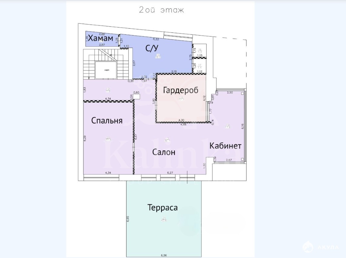 2 этаж: холл, кабинет, спальня с санузлом и гардеробной, хаммам, терраса.