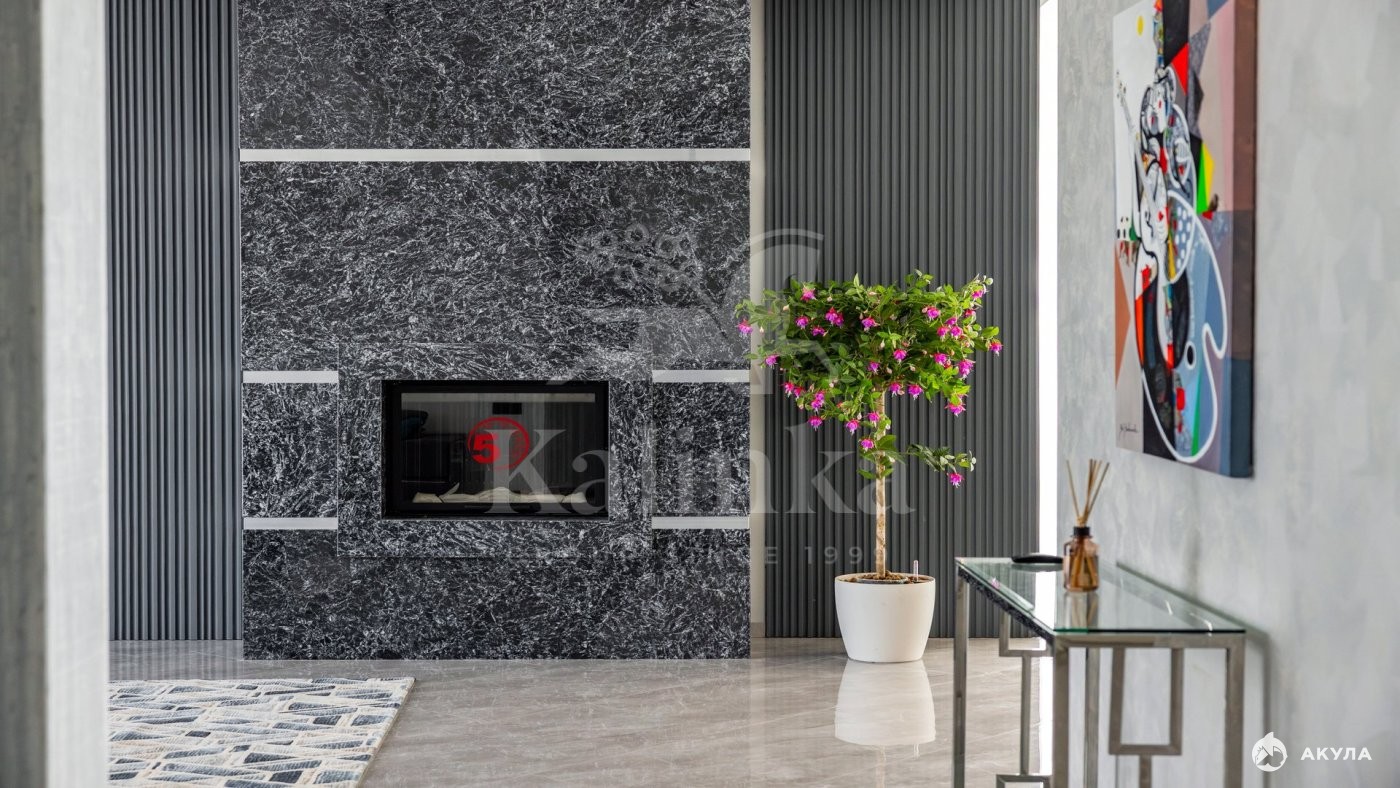 Внутренняя отделка выполнена «под ключ». Современный дизайнерский ремонт 2025 года. На первом этаже выложен широкоформатный керамогранит под мрамор с водяным подогревом от газового котла, регулируемым по зонам. На втором и третьем этажах уложена натуральная паркетная доска. Установлены мраморные подоконники. Прочные межкомнатные двери эмалированные высотой 2400 мм с дизайнерской стеклянной вставкой в стилистике дома, плюс черный алюминиевый профиль производства UNION. В доме установлено современное освещение от leading производителей из каталогов 2024-2025 года, установлены магнитные трековые системы, которые позволяют создавать комфортную атмосферу в комнатах и изменять уровни освещения необходимых элементов декора. Встраиваемая сантехника производства Германии и Италии.