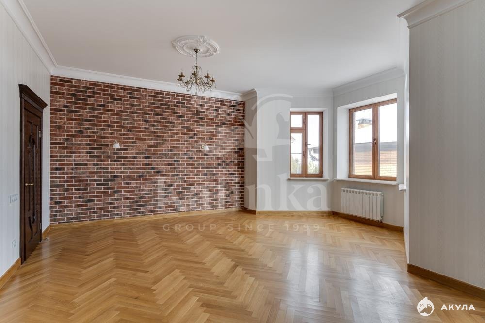 Кирпичный коттедж 583 кв.м на участке 13 соток в охраняемом коттеджном поселке Гайд Парк. Фасад дома выдержан в английском стиле, высокие потолки (3, 3-3.4м). Конструктив дома – кирпич, толщина стены 55см. Перекрытия – ж/б. Фундамент монолитный железобетонный. Кровля металлическая фальцевая. Алюминиевые окна, мраморные подоконники, лестница - массив дуба, ковка, двери – массив, паркетный пол (массив дуба). Витражное остекление (технология Тиффани). В санузлах теплые полы.