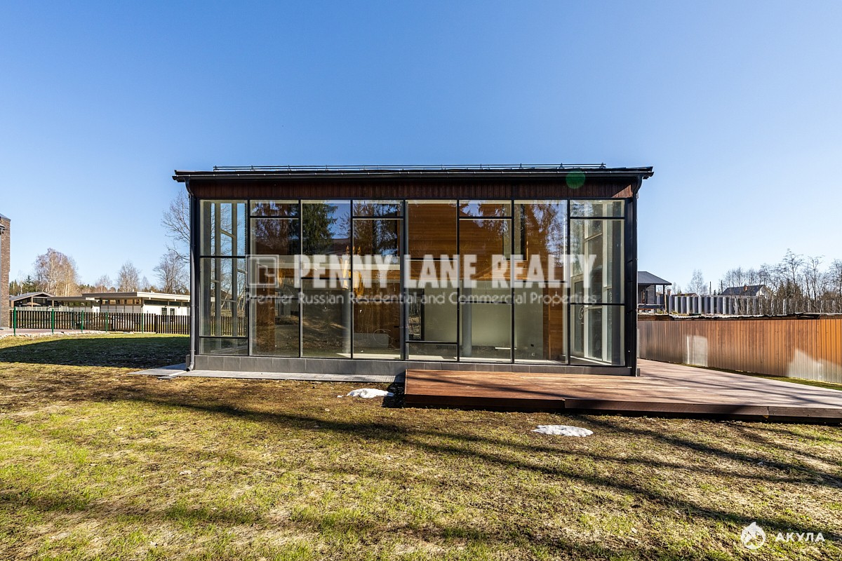 Планировка: 1 этаж - огромная зона кухни-гостинной-столовой с потолками в 6 метров и полностью стеклянной стеной, гостевой санузел, кабинет. 2 этаж - три спальни, два санузла, гардеробная комната, балкон.