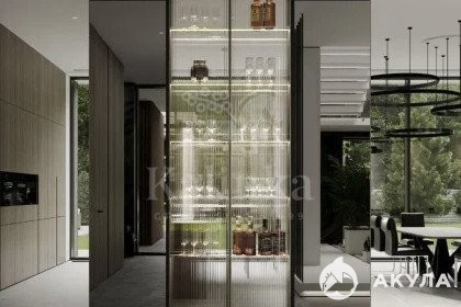 1 этаж: прихожая, гостиная-кухня-столовая, санузел, гардеробная, кладовая, постирочная, котельная, гараж на 2 машины;