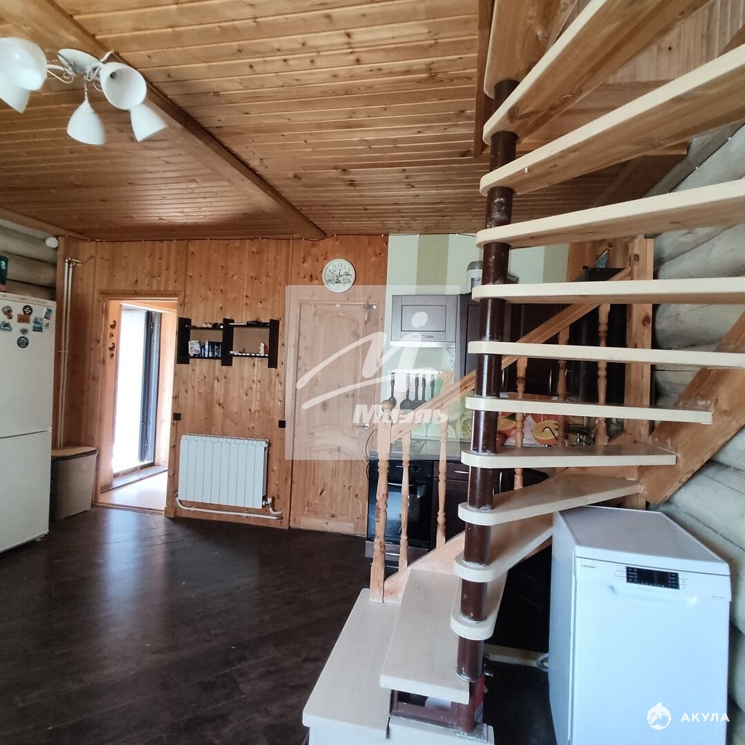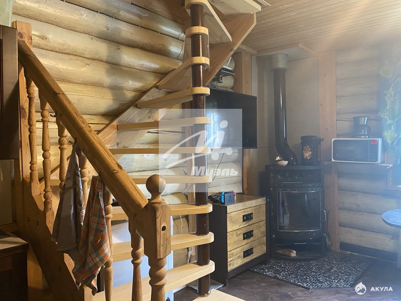 * 1 этаж: бревенчатые светлые стены, высокий потолок. Прихожая зона с большим шкафом, кухня-гостиная с дровяным камином, буфетом, способна вместить не только хозяев, но и гостей. Совмещенный санузел с душевой кабиной. Теплый пол.