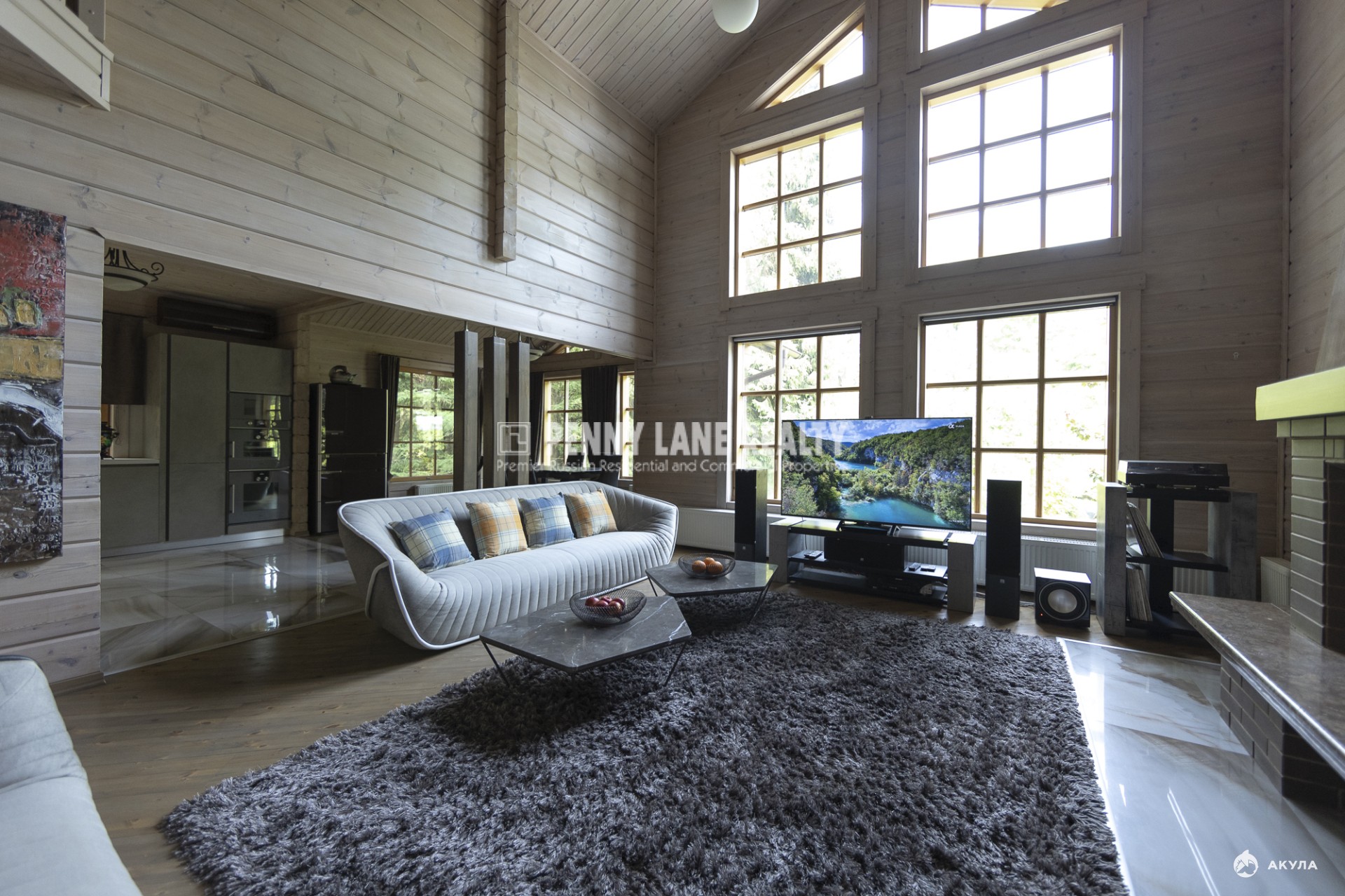 Материал: кругляк обшитый финской доской. 2 этажа, площадь 183, 7 кв.м. Современная кухня со столовой. 2 спальни. 2 гостиные на 1 этаже. Гостиная на 2 этаже. Караоке с проф. оборудованием. 2 chill-out зоны. Инфракрасная сауна с гималайской солью. Купель. 2 с/у с постирочной зоной. 4 кладовые