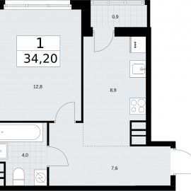 1-комн. квартира от застройщика с отделкой в ЖК "Родные кварталы" на 9 этаже. Общая площадь: 34.2 кв.м., жилая: 12.8 кв.м., площадь кухни: 8.9 кв.м. Все окна выходят на одну сторону. В квартире одна лоджия, один совмещенный санузел. Высота потолков 2.95 м. Дом монолитный,...