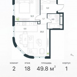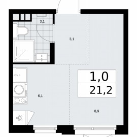1-комн. квартира-студия с предчистовой отделкой в ЖК "Прокшино" на 3 этаже. Общая площадь: 21.2 кв.м., площадь гостиной 15 кв.м., из которых 6.1 кв.м. выделено под кухонную зону. Все окна выходят на одну сторону. В квартире один совмещенный санузел. Высота потолков 2.99 м. Эта квартира...