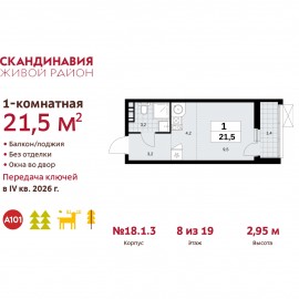 Просторная 1-комн. квартира-студия в ЖК "Скандинавия" на 8 этаже. Квартира без отделки, полностью готова к ремонту. Общая площадь: 21.5 кв.м., площадь гостиной 13.7 кв.м., из которых 4.2 кв.м. выделено под кухонную зону. Все окна выходят на одну сторону. В квартире один балкон, один...