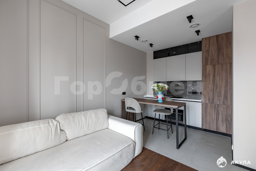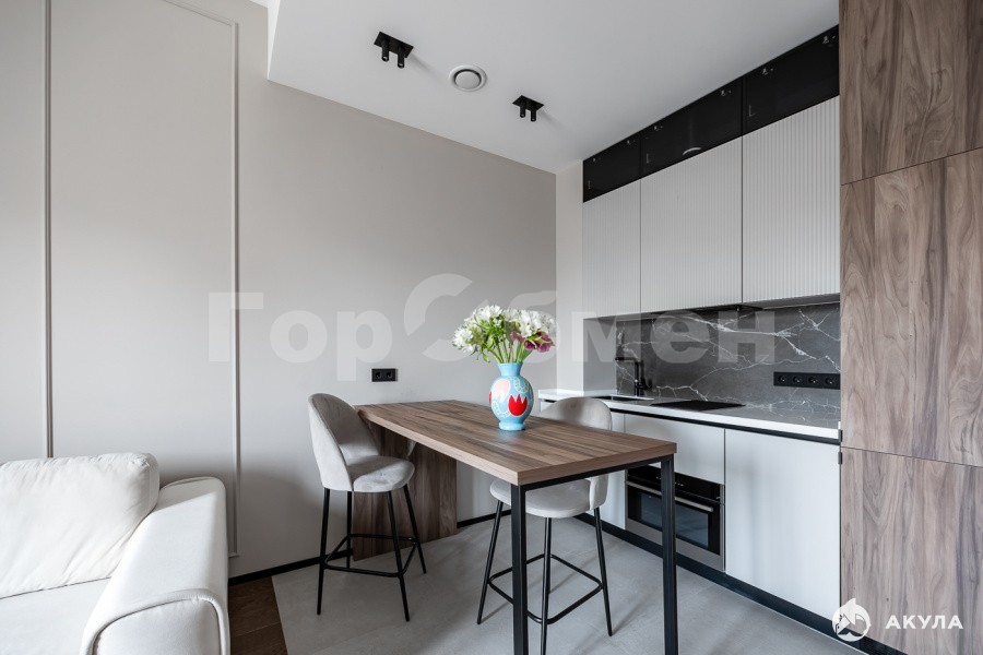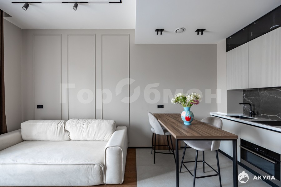 Дизайнерский ремонт в светлых тонах с применением премиальных материалов и техники.Пространство зонировалось и рассчитывалось с точностью до полусантиметра. Есть дизайн проект в электронном виде. Квартира полностью меблирована и укомплектована всей необходимой техникой от европейских брендов. Каждая деталь продумана, чтобы создавать атмосферу элегантности и комфорта. Функциональная планировка включает кухню-гостиную, спальню с гардеробом, санузел с душевой кабиной и прихожую.Немецкий перфекционизм от Helmut Jahn - архитектора комплекса продолжен в дизайне самой квартиры, что создает гармоничную атмосферу проживания. Вам точно захочется возвращаться домой..