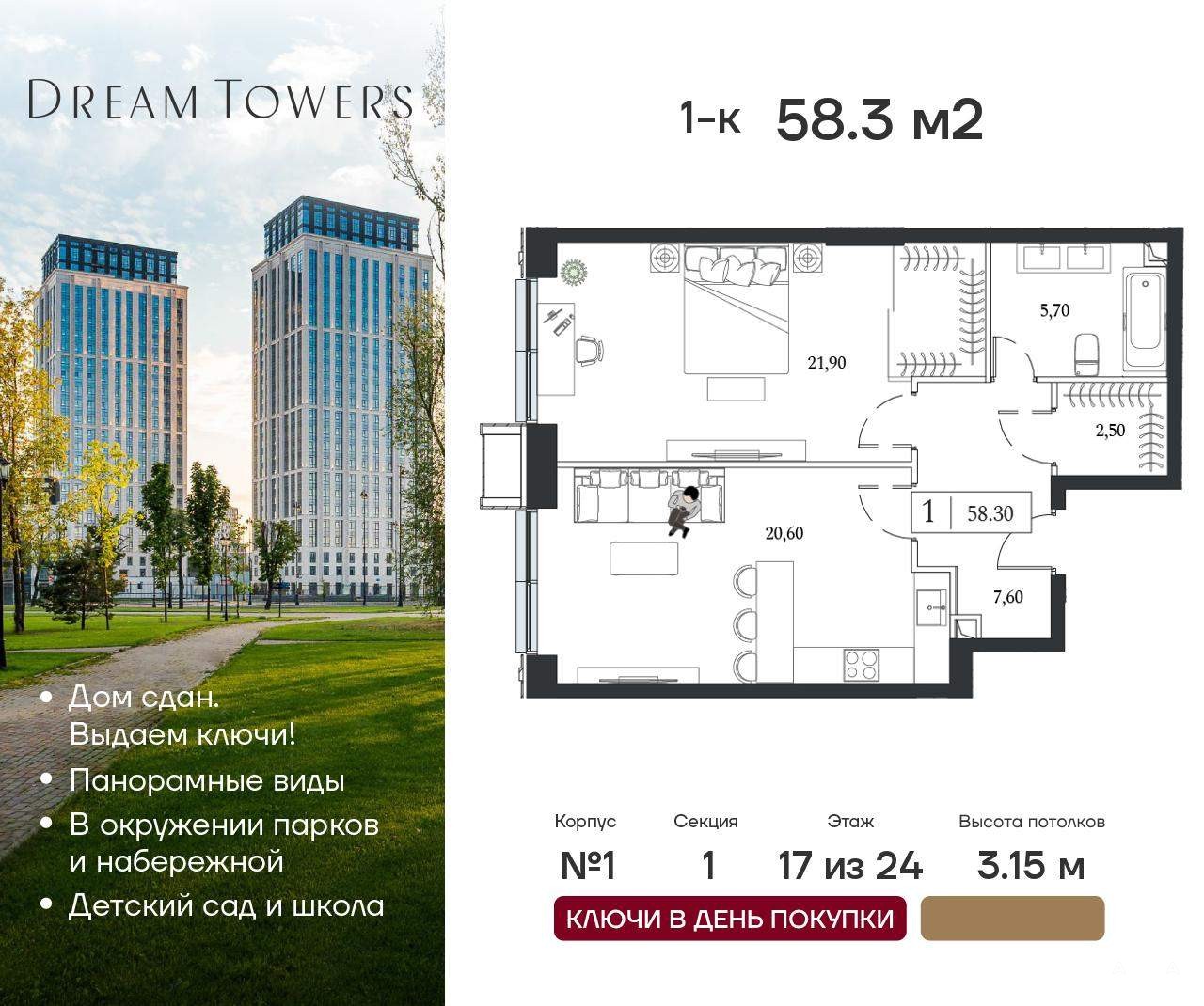 В Dream Towers предусмотрено все для комфортной жизни с семьей: